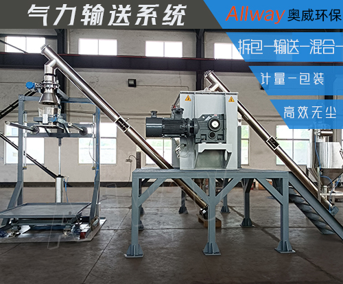 該套設(shè)備為英國客戶量身定制的拆包-輸送-混合-計(jì)量-包裝系統(tǒng)設(shè)備,整個(gè)系統(tǒng)由電控柜控制,將人工投料站中的物料經(jīng)過螺旋輸送機(jī)輸送至臥式螺帶混合機(jī)中攪拌混合,混合完成之后再由螺旋輸送機(jī)輸送至噸袋包裝機(jī)包裝物料,噸袋包裝機(jī)上配置稱重模塊,可以將物料稱重后按客戶要求的量包裝至噸包中。